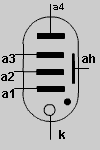 Betriebsdaten : Ub = 270..300V; Uz = 335V;Id = 10..80mA Rf = 240Ohm Reihenschaltung von 4 Glimmstrecken |